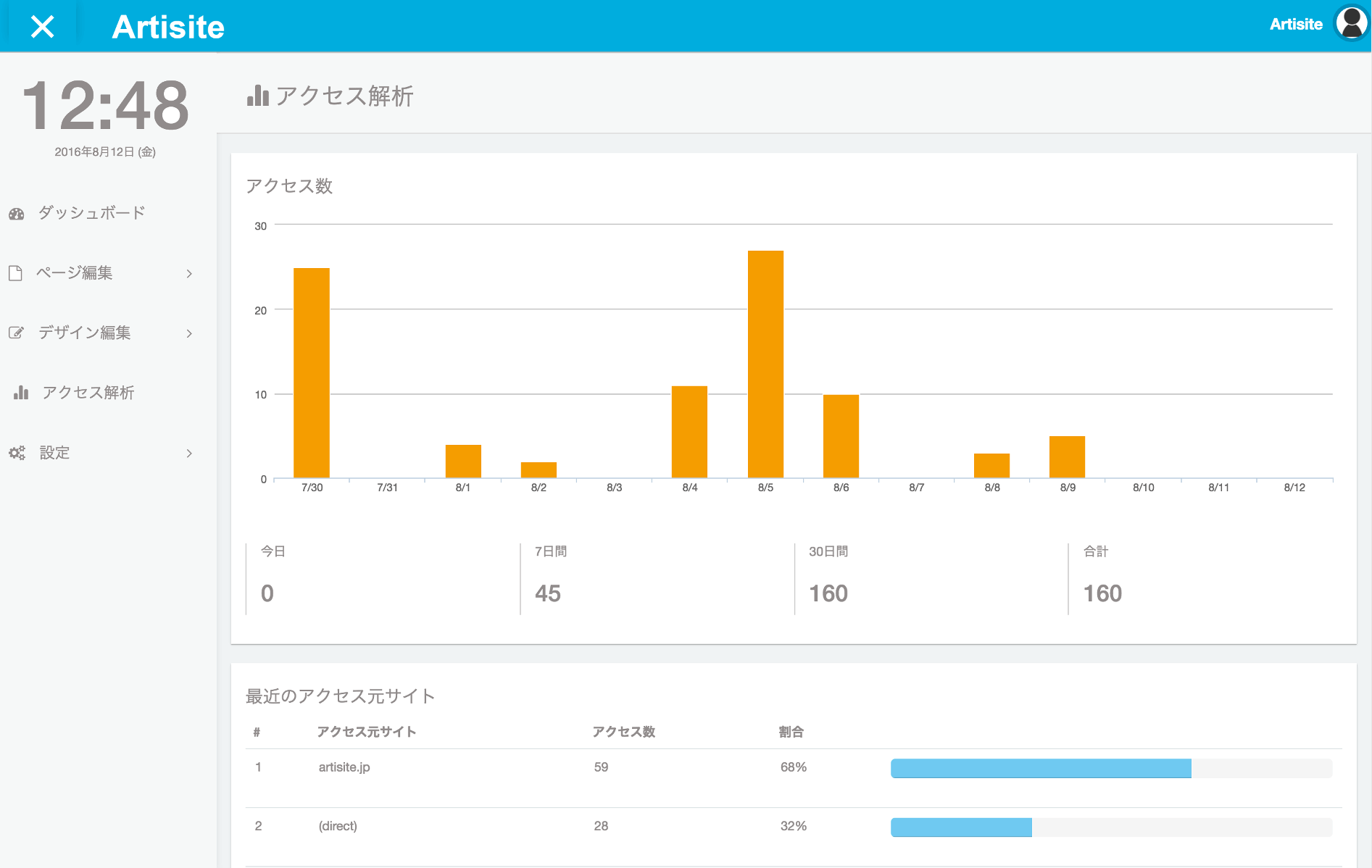 簡易アクセス解析ツールで、アクセス数や訪問経路を把握することが可能です。